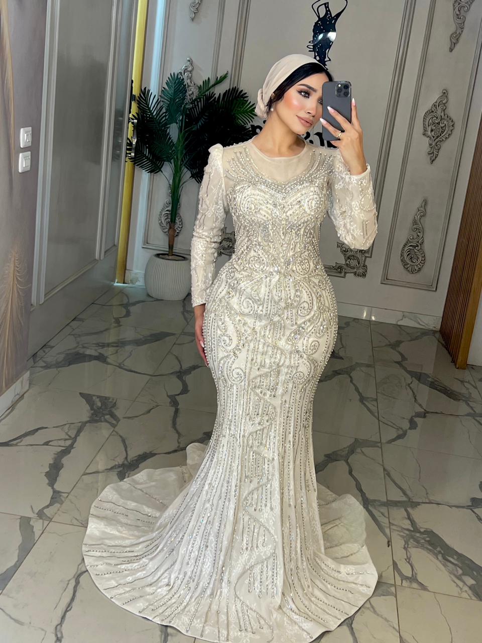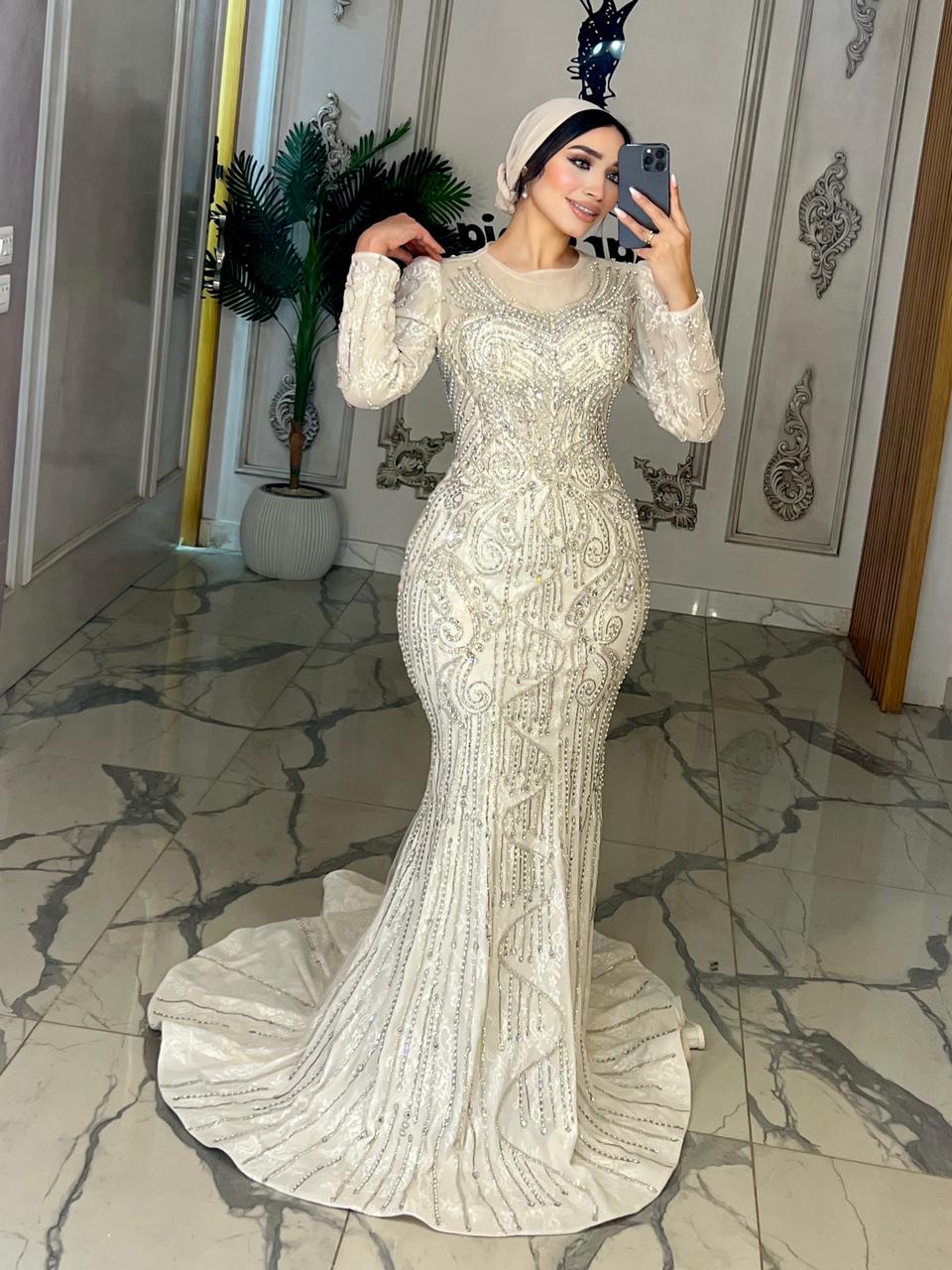 فستان هاند ميد صك مطعم بالاحجار والاسترس